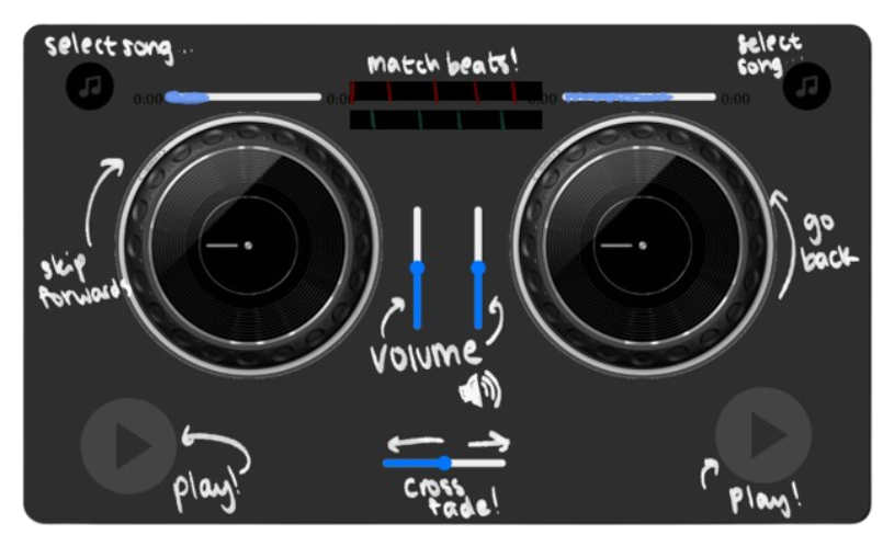 select your tracks, mess around with the volumes, crossfader, and jogwheels to make your own mashup!
